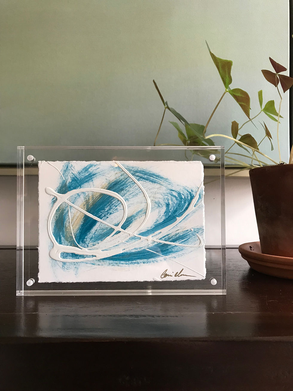 Mother of 3 boys, former psychotherapist and current abstract artist, Atlanta-based Corrie Inman loves incorporating movement and texture in her artwork while also paying close attention to the serenity that comes with the delicate balance of negative space.
